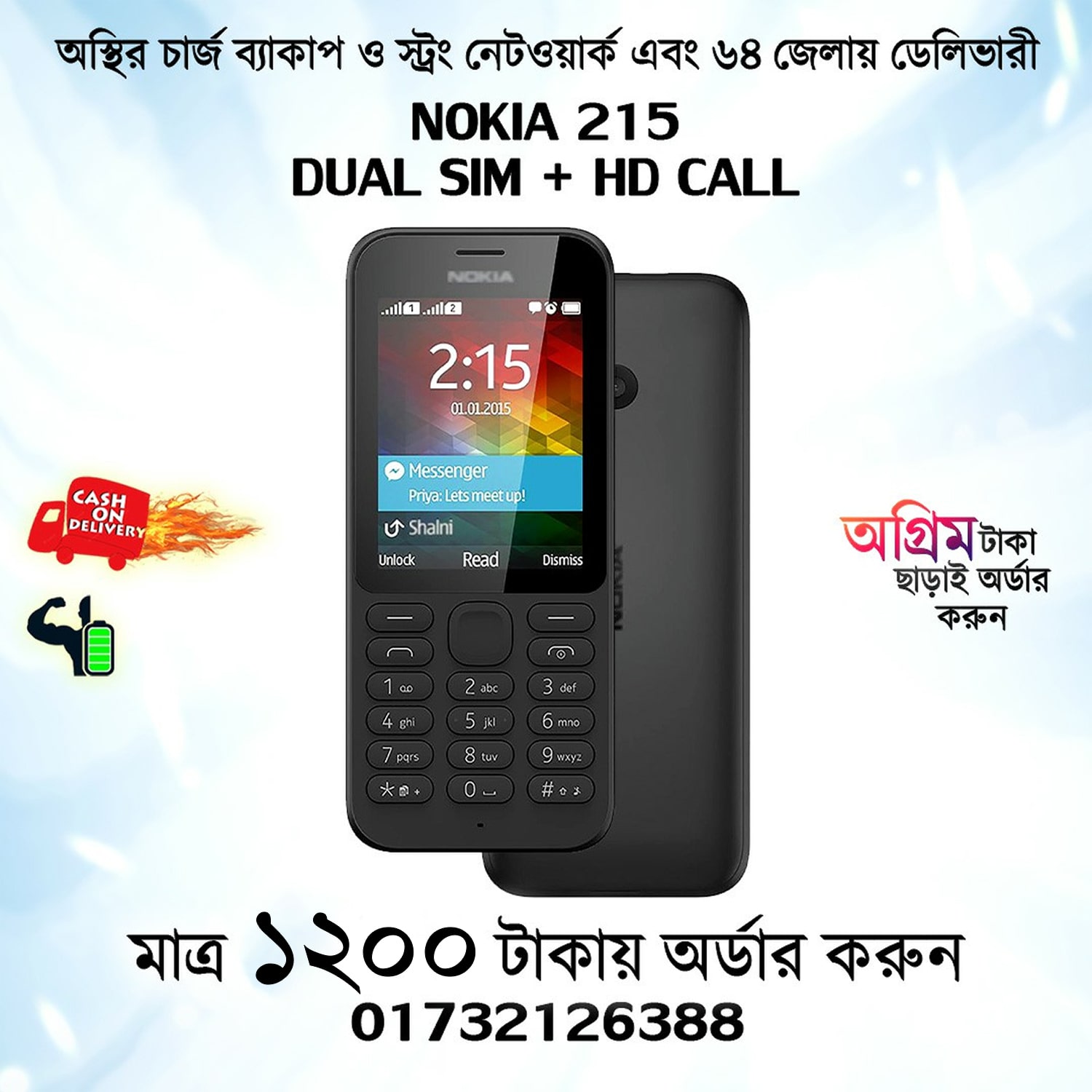 অস্থির নোকিয়া বাটন মোবাইল নোকিয়া ২১৫ অর্ডার করুন Mobile Candy তে।